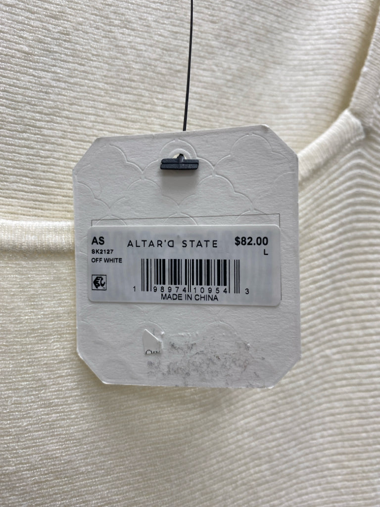 [{"id":41858694185063,"title":"L","option1":"L","option2":null,"option3":null,"sku":"28397-344","requires_shipping":true,"taxable":true,"featured_image":null,"available":true,"name":"altar'd state Size L White Ladies Dress - L","public_title":"L","options":["L"],"price":4000,"weight":907,"compare_at_price":null,"inventory_management":"shopify","barcode":"03966859","requires_selling_plan":false,"selling_plan_allocations":[]}]