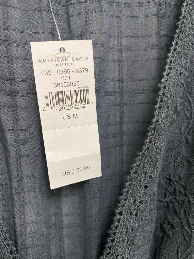 American Eagle Size M Charcoal V Neck Gauze Ladies Dress