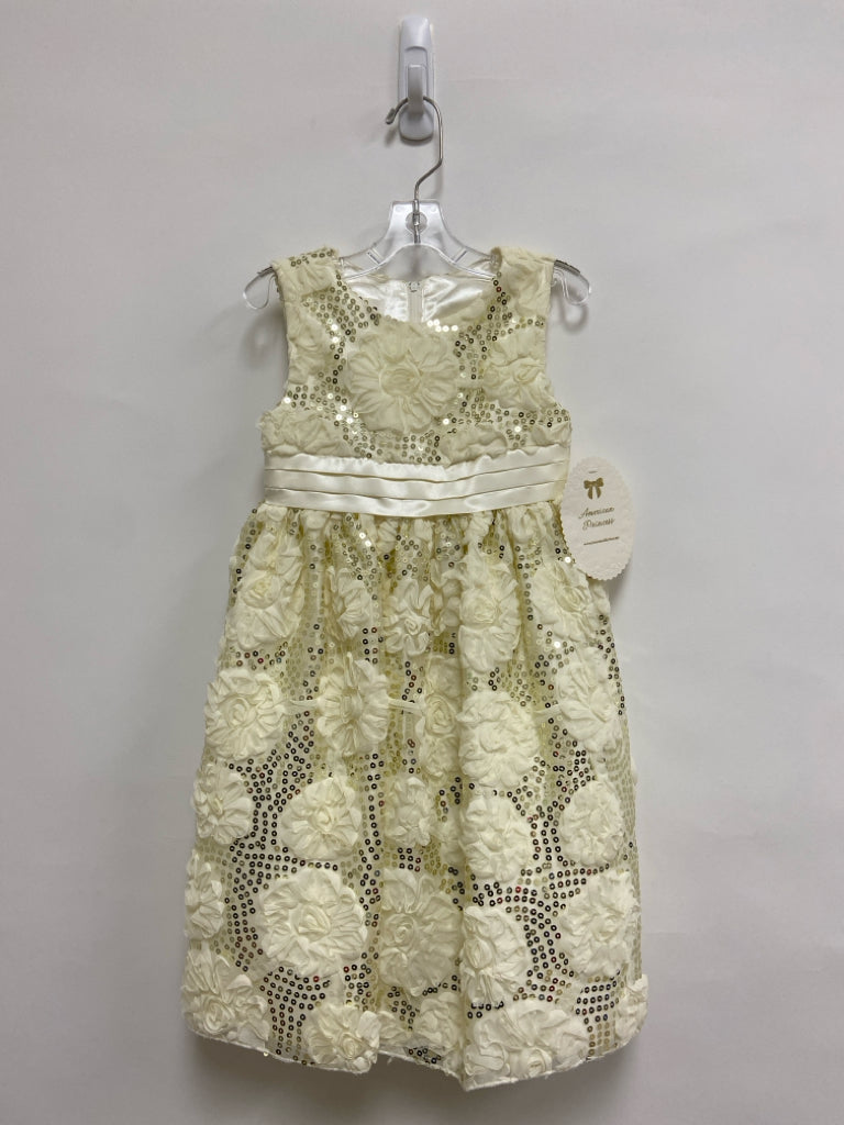 American Princess SIZE 5 Ivory Gold Rosette Sleeveless Girl's Dress