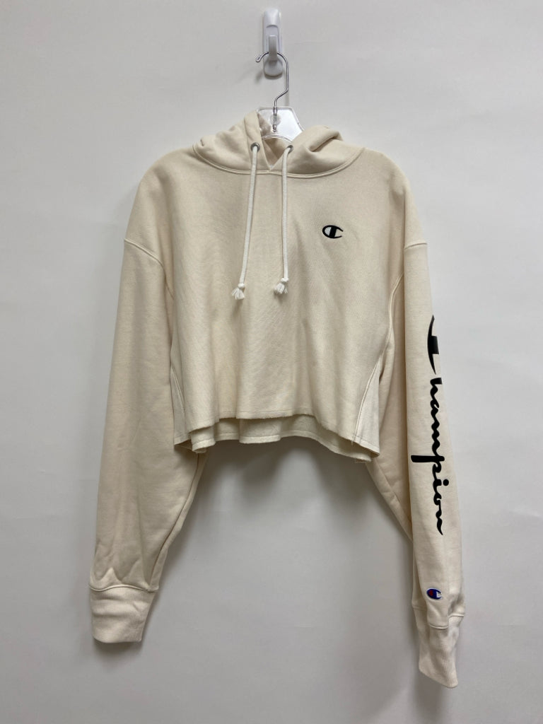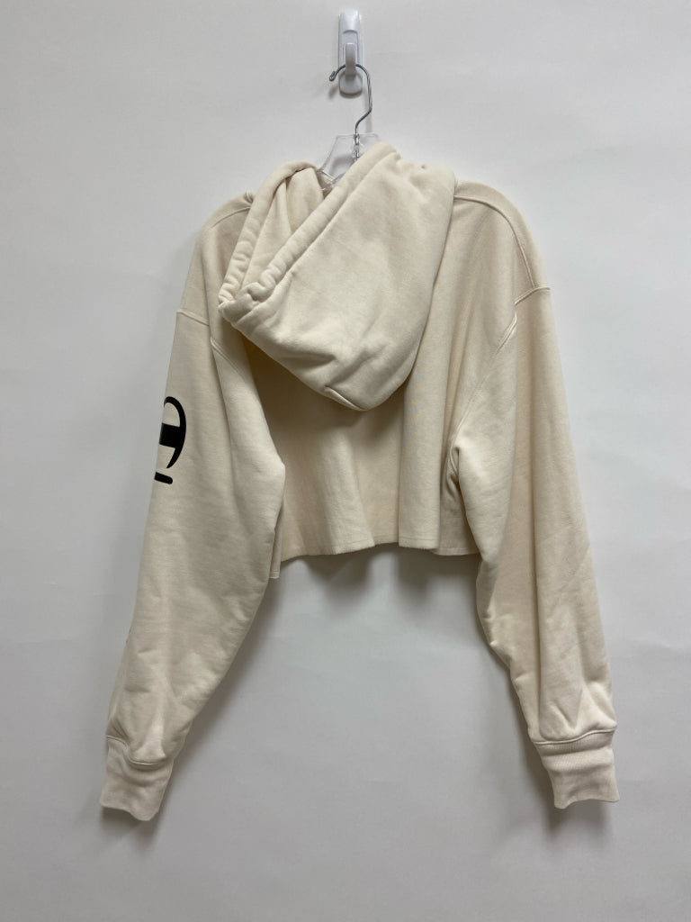 Champion Size L Cream Black Logo Hooded Athletic Sweatshirt