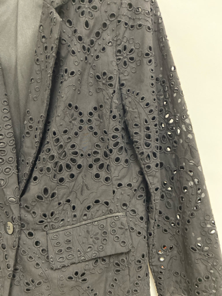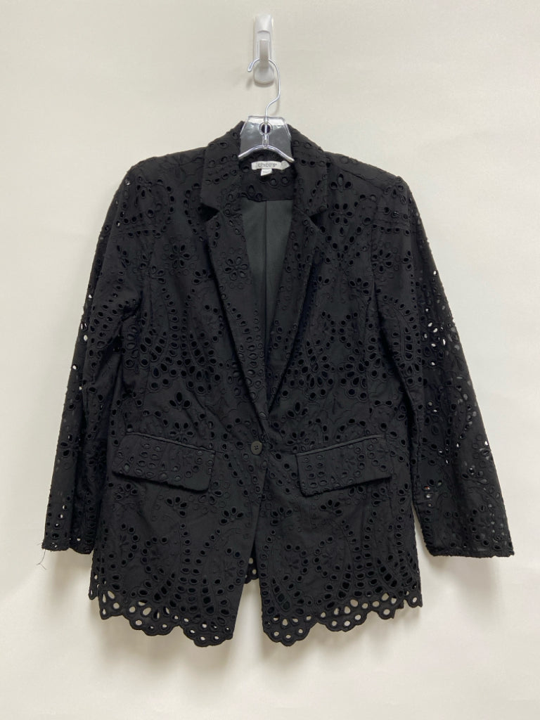 Chico's Size 0.5 Black Flowers Eyelet Ladies Jacket