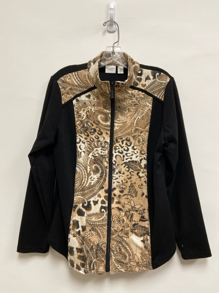 Chico's Size 1 Tan/White Black Acanthus Zip Down Ladies Jacket
