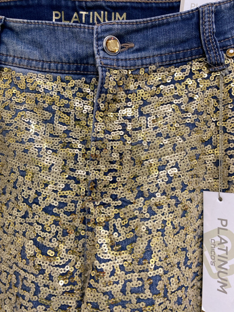 Chico's Size 2R Denim Gold Sequins Ladies Jeans