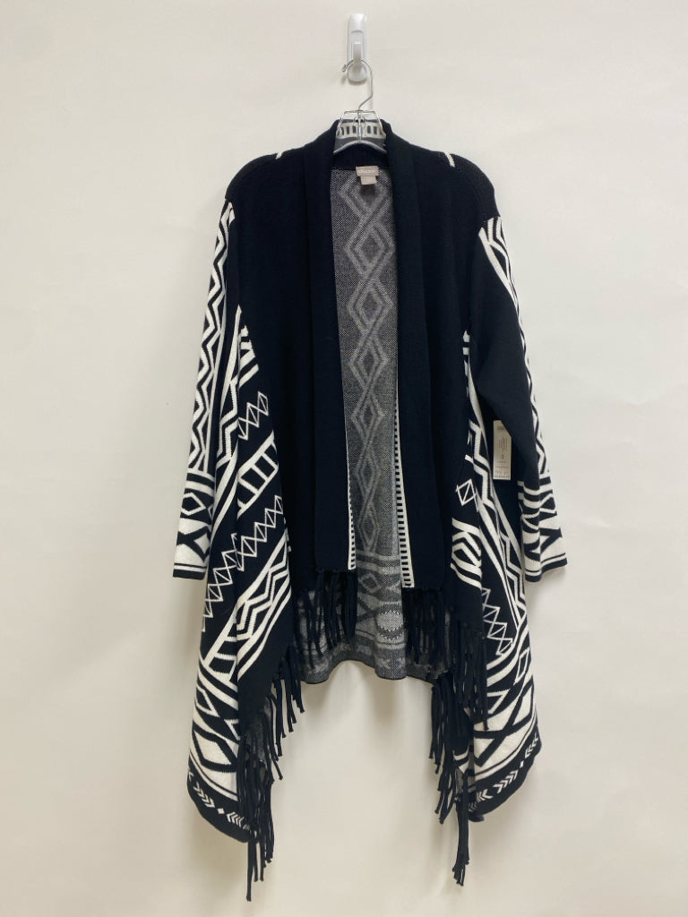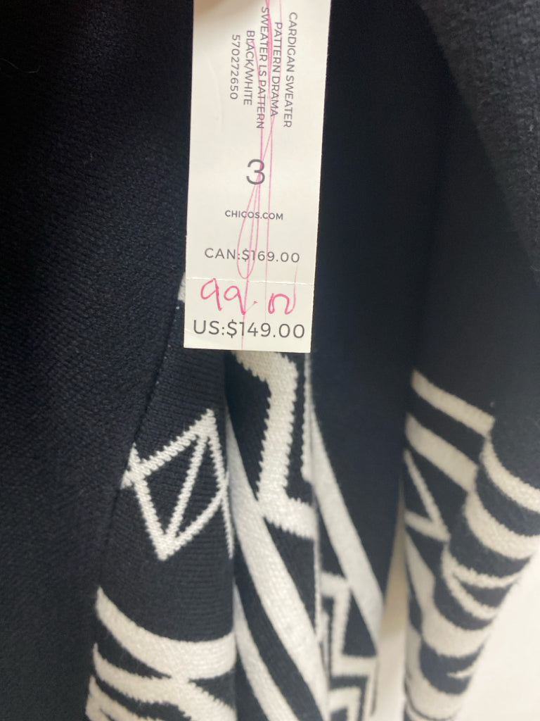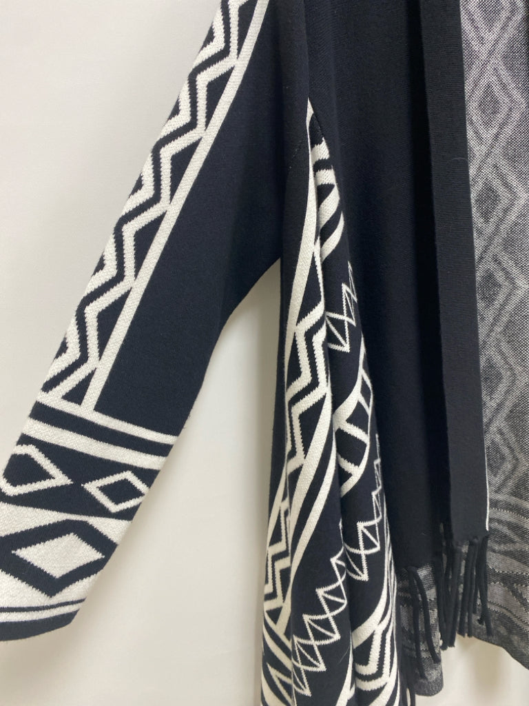 Chico's Size 3 Black White Print Drape Fringe Ladies Sweater