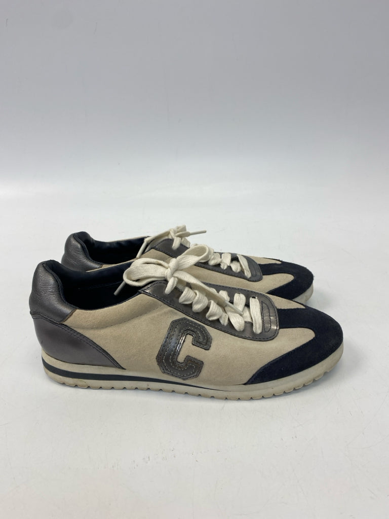 Coach Size 6 Tan/Blk Pewter Lace-up Suede Sneakers