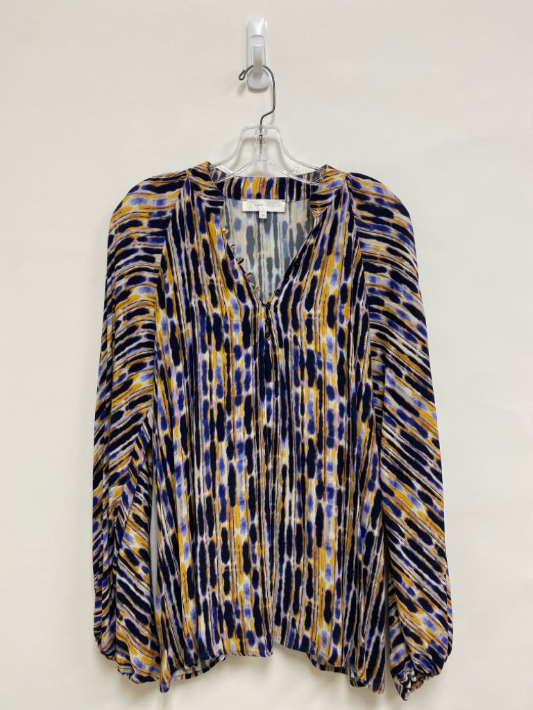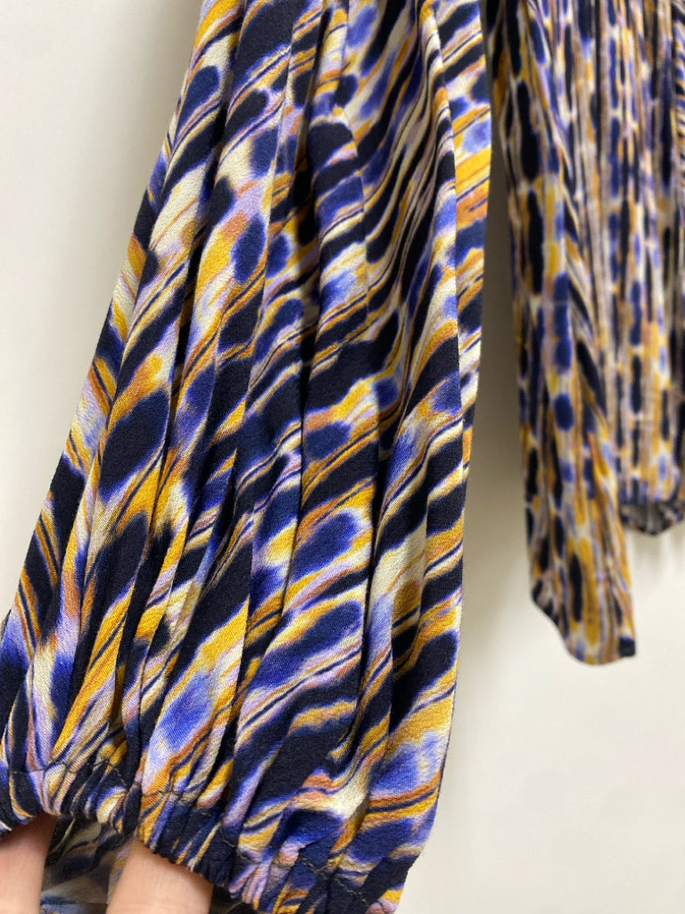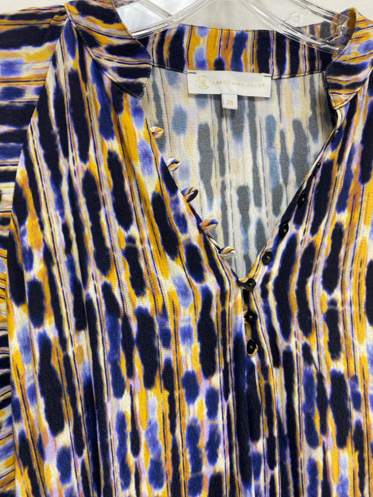 Corey Lynn Calter Size XS Navy/White Purple/Yellow Abstract V Neck Ladies Top