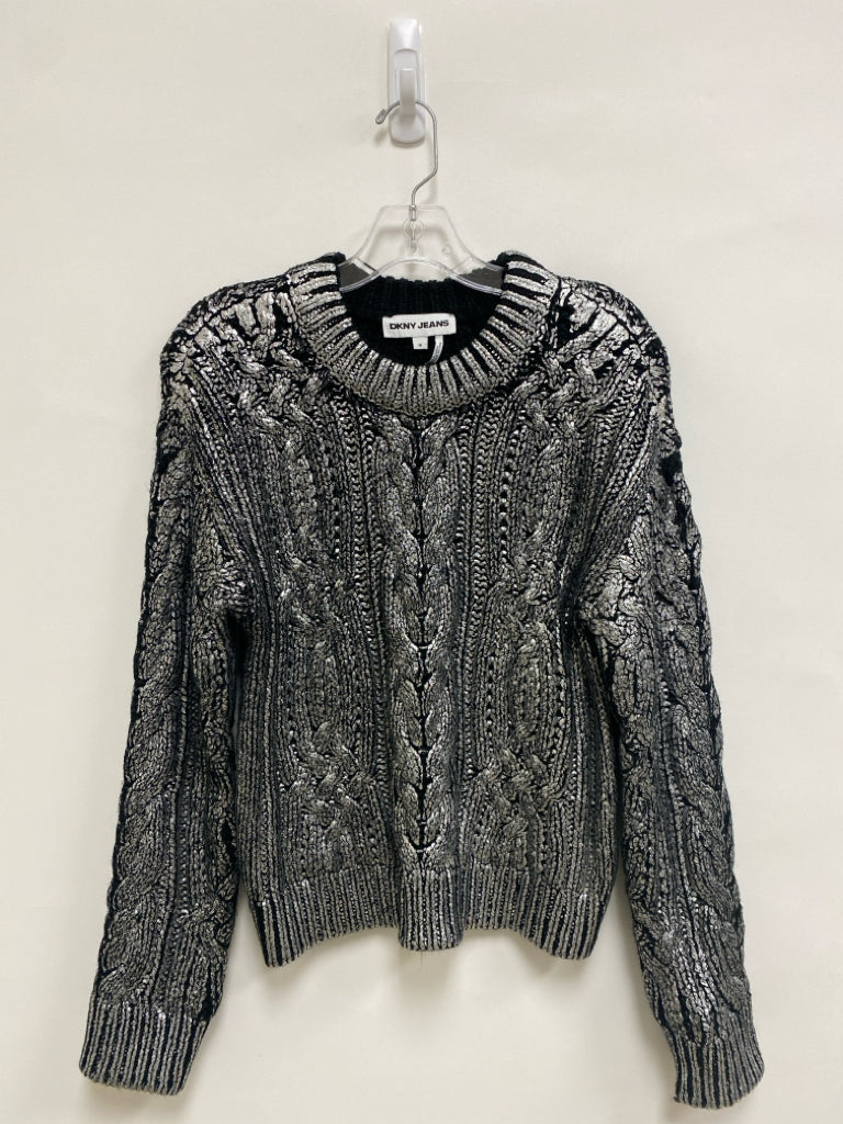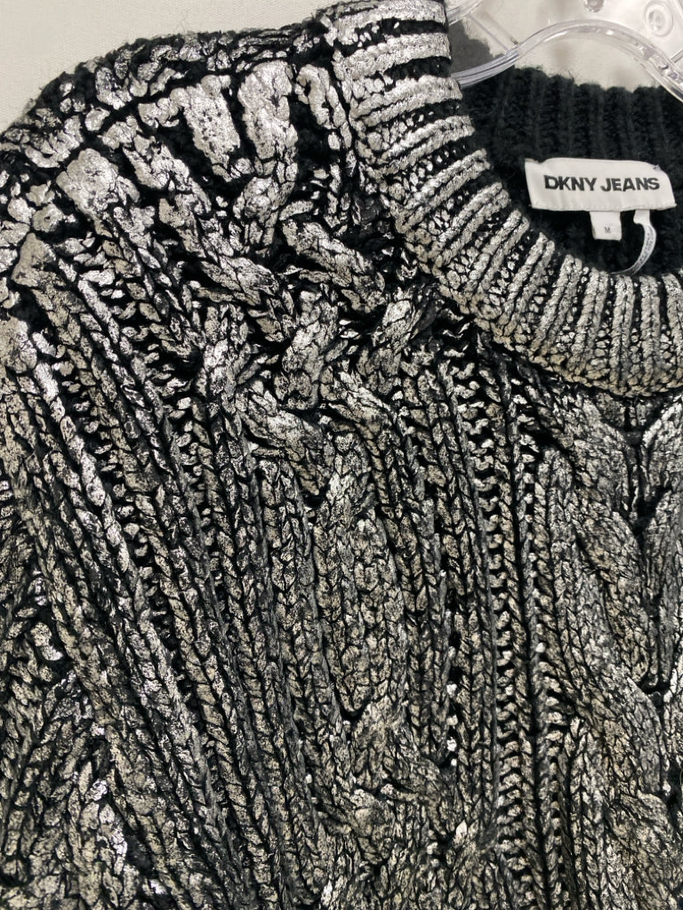 DKNY Size M Silver Black Cable Knit Ladies Sweater