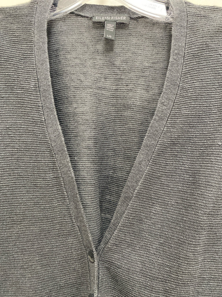 Eileen Fisher Size L Dark Gray Cardigan Ladies Sweater