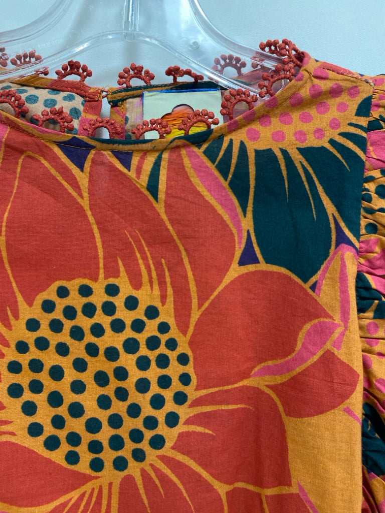 farmrio Size XS Terra Cotta Navy/Pink Floral Ladies Top