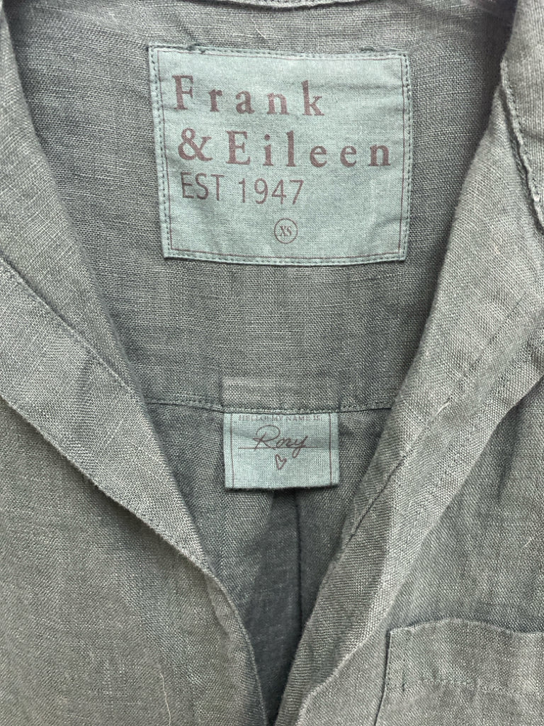 Frank & Eileen Size XS Dark Green Button Up Linen Ladies Dress