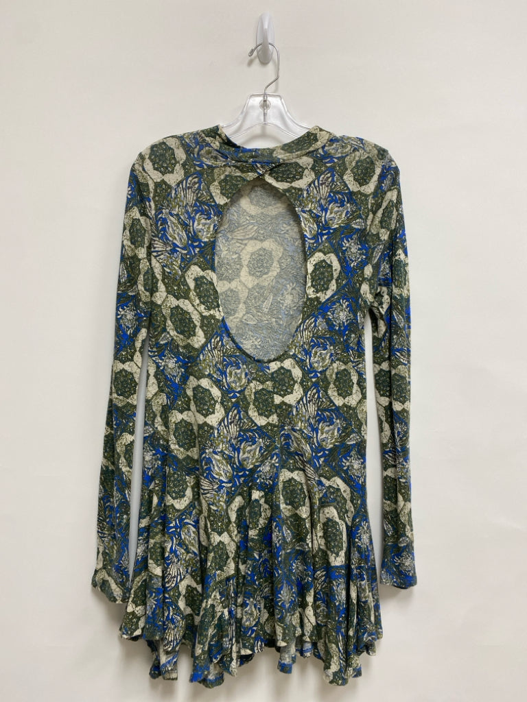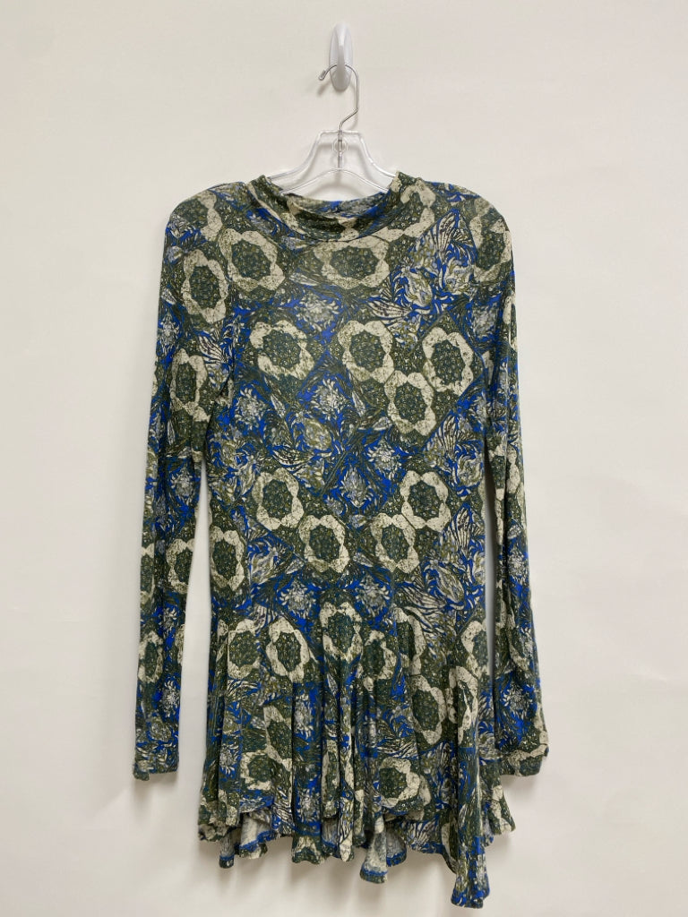 Free People Size M Green Blue/Cream Floral Ladies Top