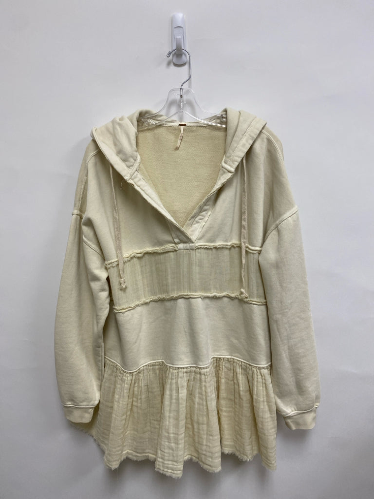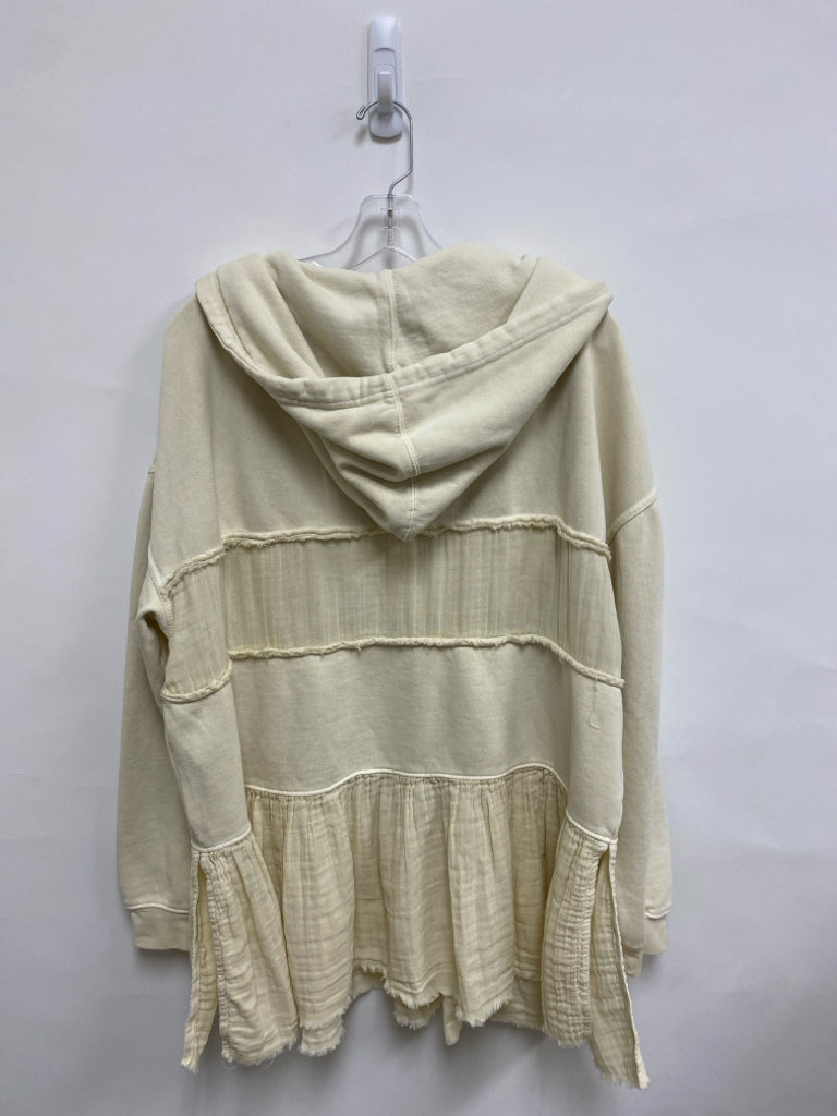 Free People Size M Ivory Hooded V Neck Gauze Ladies Sweatshirt