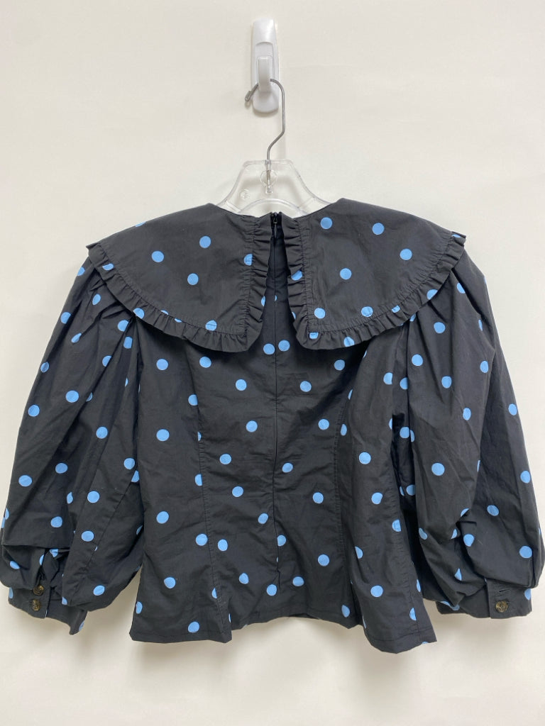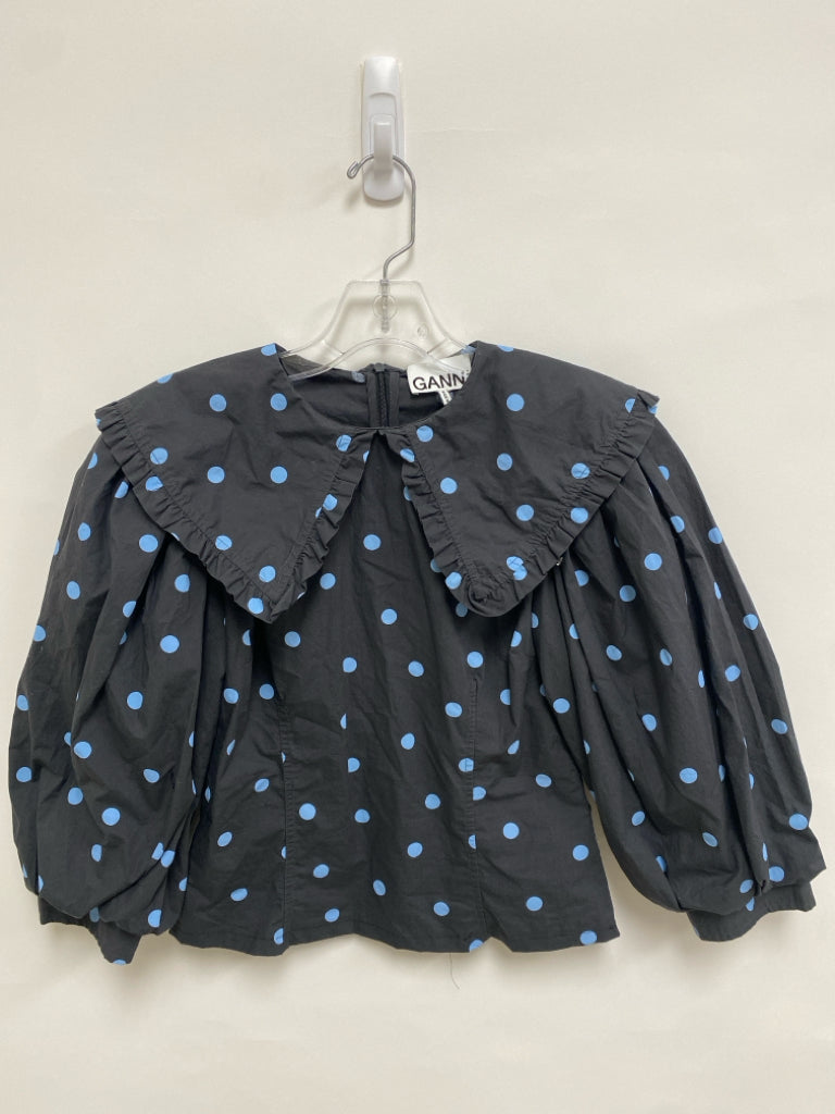 Ganni Size XS Black Powder Blue Polka Dot Ladies Top