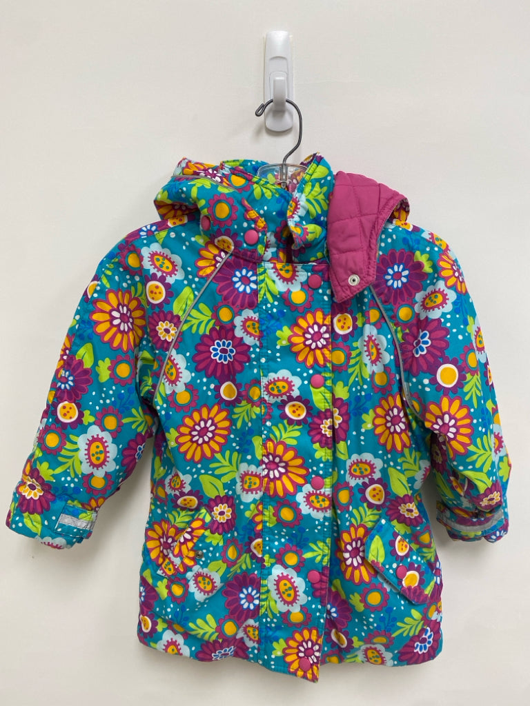 hanna Andersson SIZE 4 Aubergine Pink/Multi Flowers Zip Down Hooded Girl's Coat
