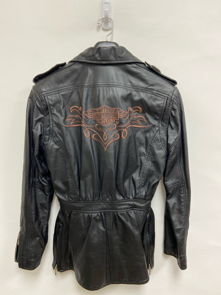Harley-Davidson Size S Black Zip Down Leather Ladies Coat