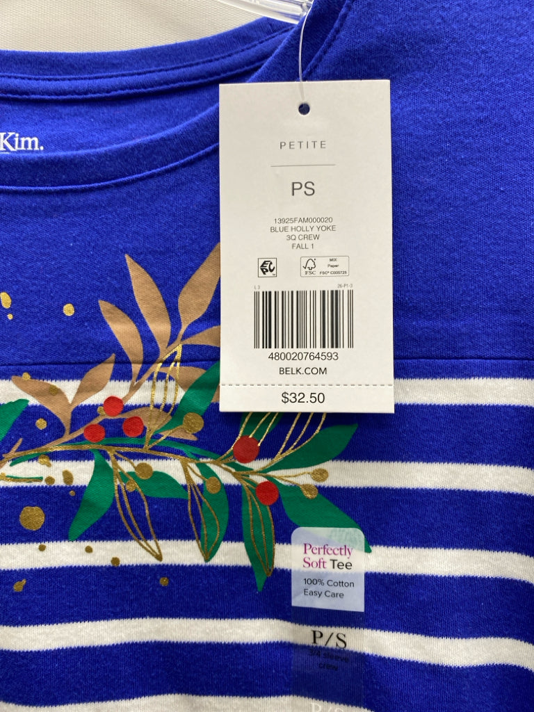 Kim Rogers Size SP Royal Blue/White Striped Petite Top
