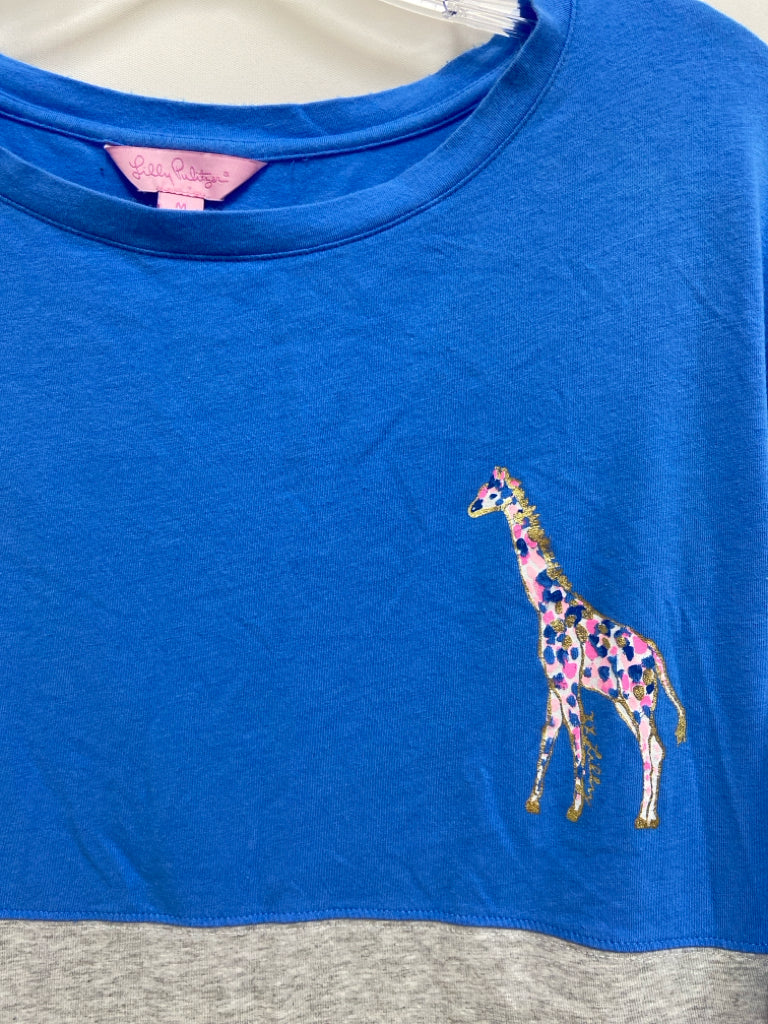 LILLY PULITZER Size M Blue Gray/Pink Giraffe Ladies Top