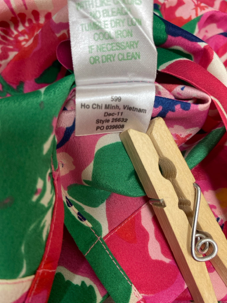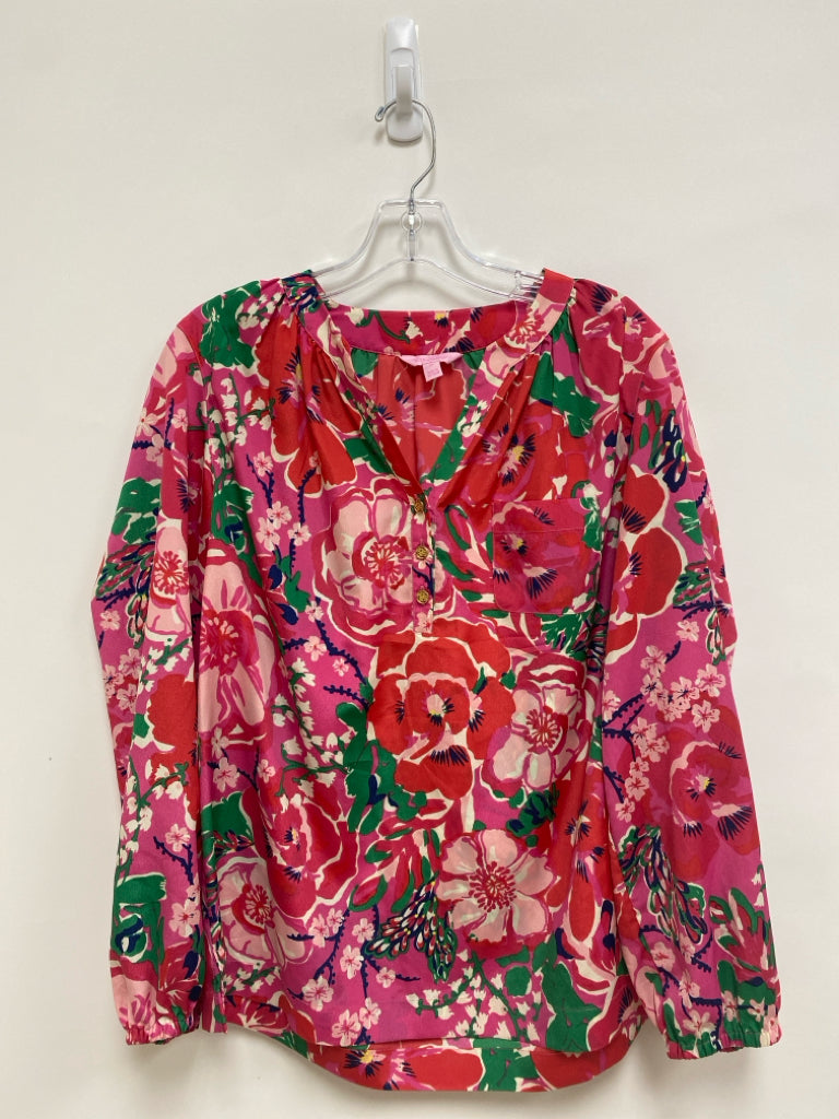 LILLY PULITZER Size M Hot Pink Green/Multi Floral Quarter Button Ladies Top