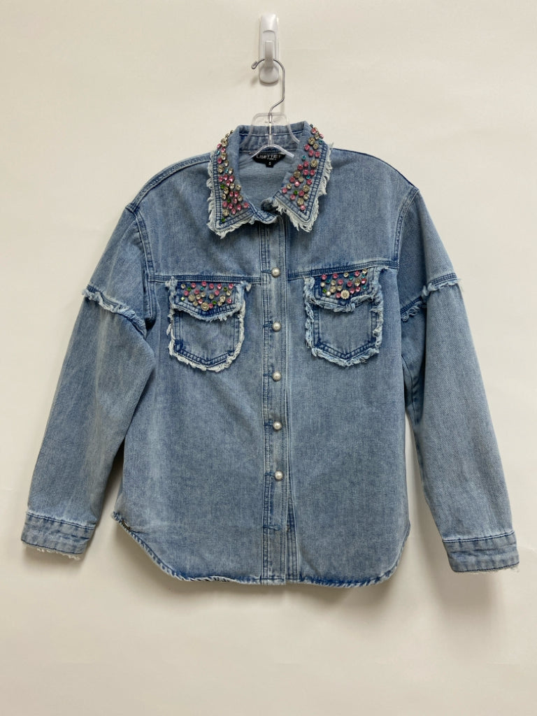 Lisette Size S Faded Denim Rhinestone Button Up Ladies Top
