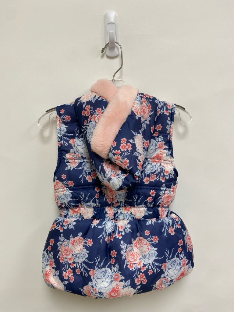 Little Lass SIZE 5 Navy Pink Flowers Puffer Hooded Girl's Vest