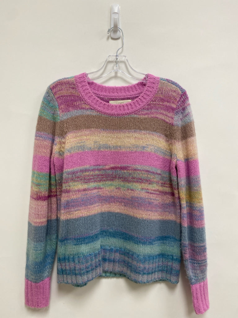 LOFT Size M Pink/Blue Coral/Yellow Streaked Ladies Sweater