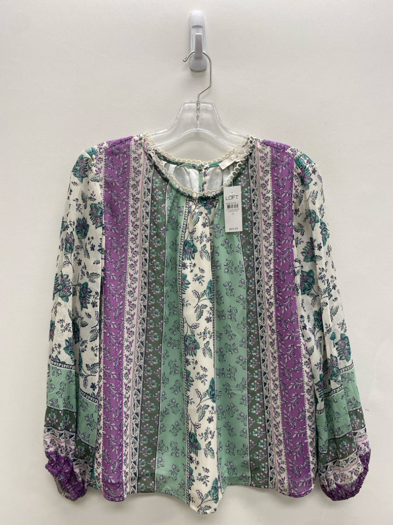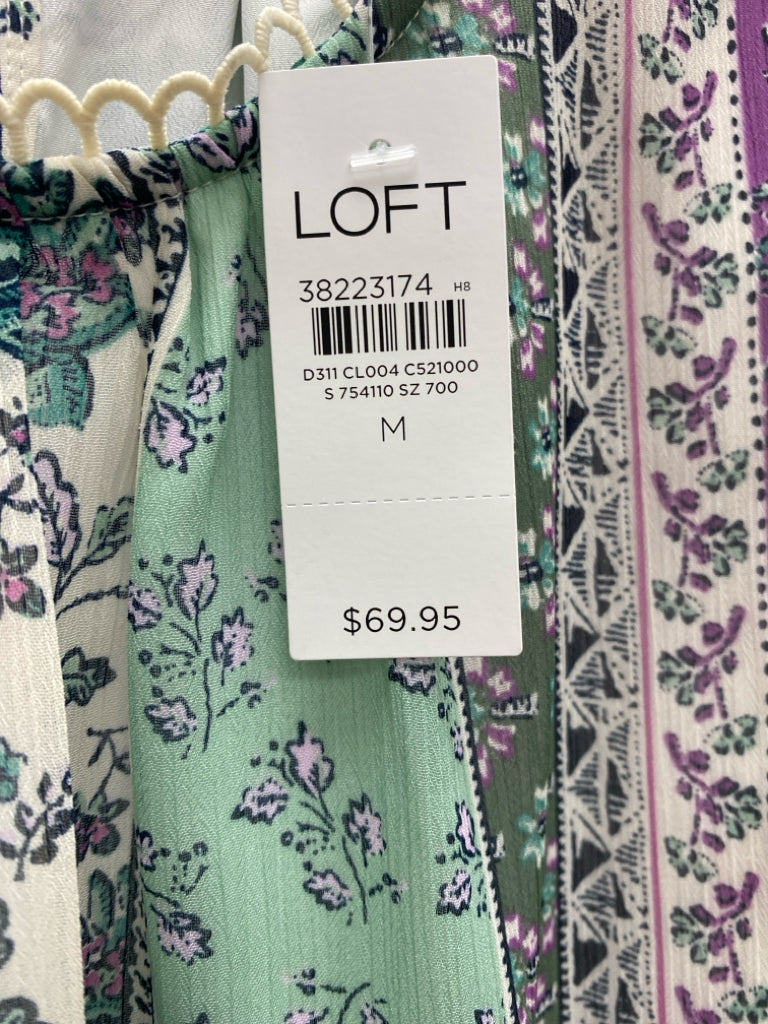 LOFT Size M White Lavender/Green Flowers Ladies Top