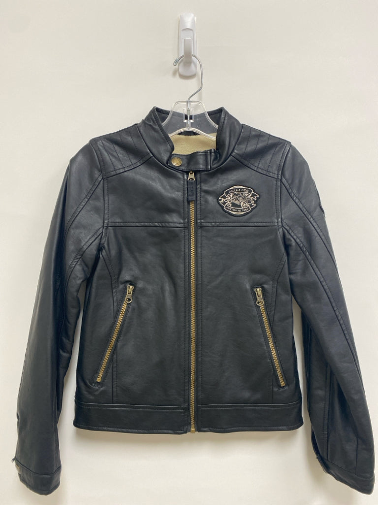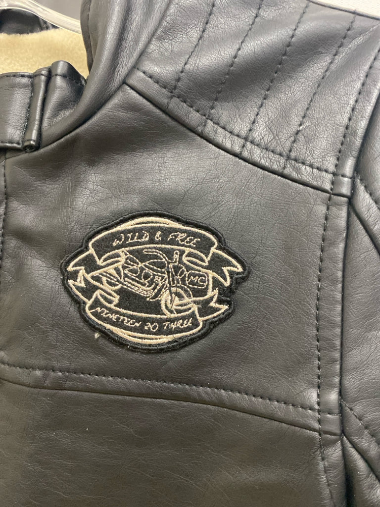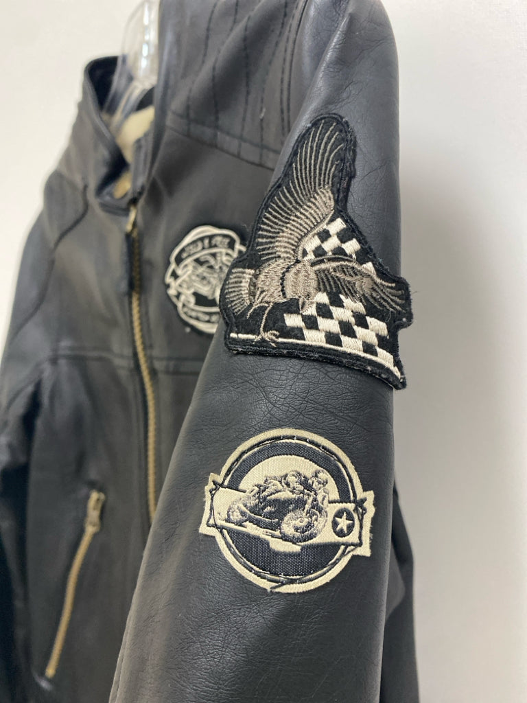 London Fog SIZE 8 Black Patches Zip Down Faux Leather Boy's Jacket