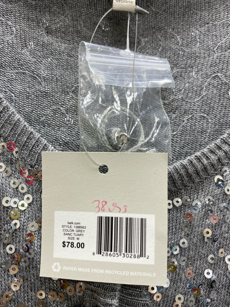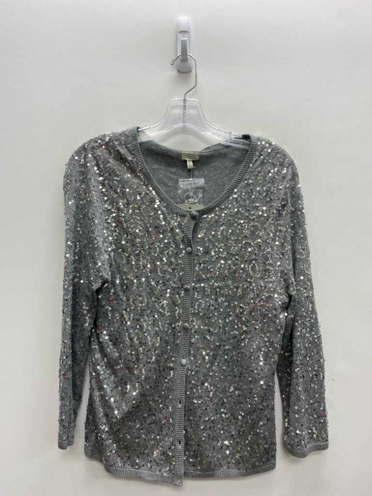 Madison Size M Gray Sequins Cardigan Ladies Sweater