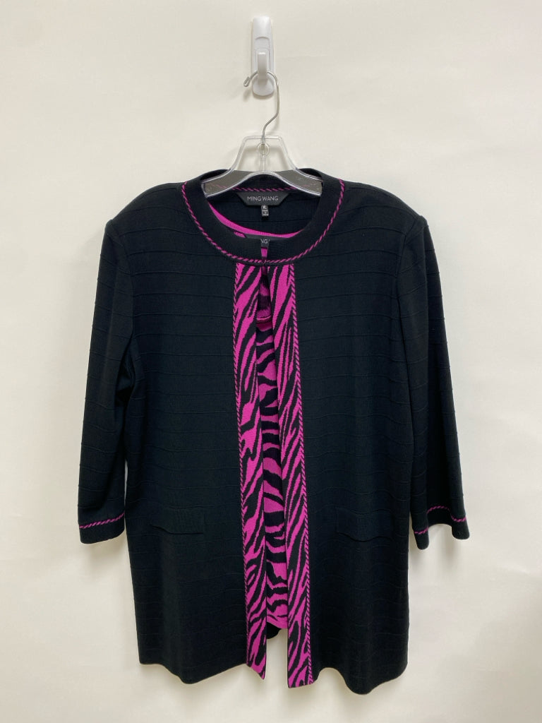 Ming Wang Size XL Black Purple Ribbed Ladies Sweater