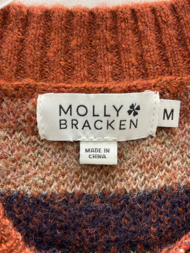Molly Bracken Size M Brown Navy/Tan Striped Ladies Sweater