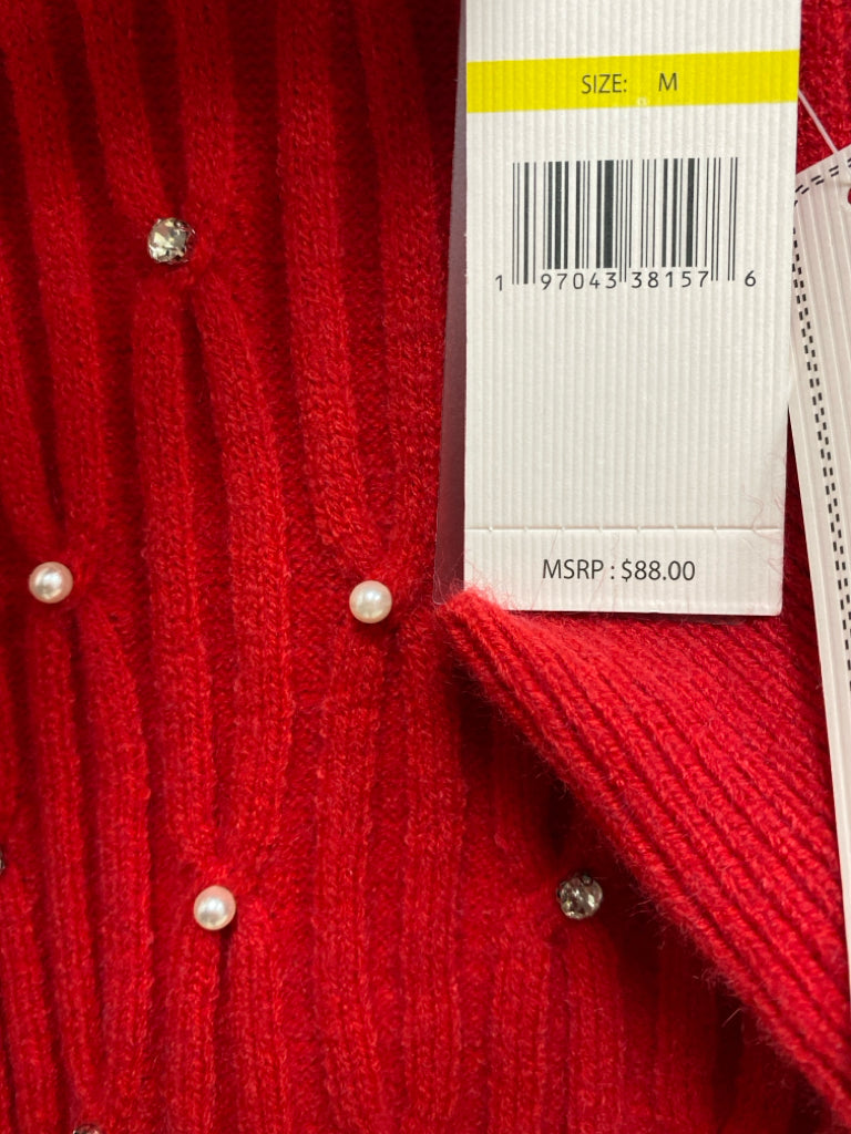 Nanette Lepore Size M Red Pearl Jeweled Ladies Sweater