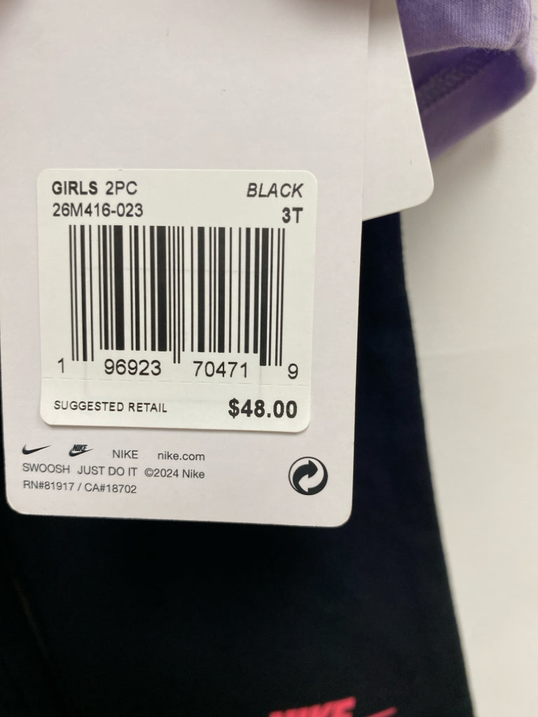 Nike SIZE 3T Lavender Black Girl's 2pc