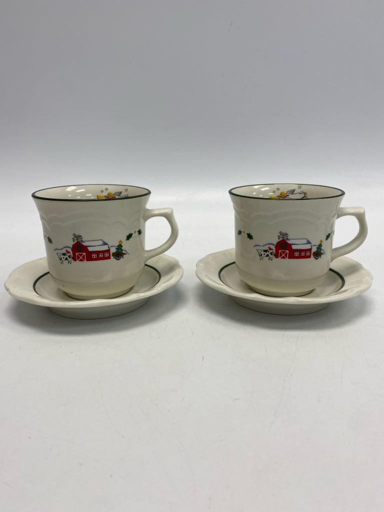 Pfaltzgraff White Green/Multi Christmas Cup/Saucer