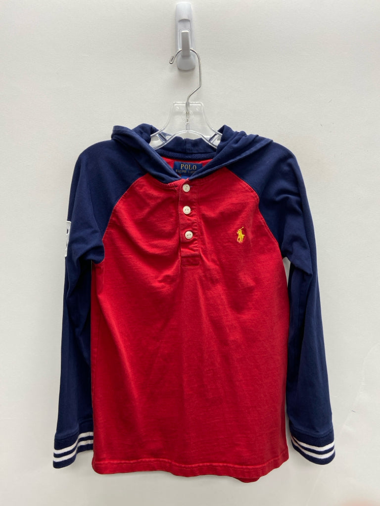 Polo SIZE 10/12 Navy/Red Quarter Button Hooded Boy's Shirt