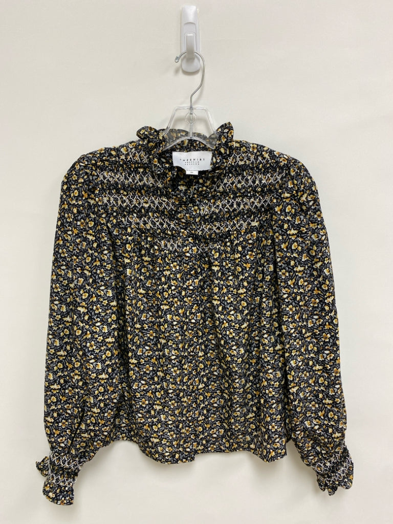 Rochelle Behrens Size XS Black/Gray Tan/White Smocking Ladies Top