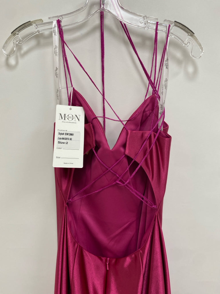 Size 2 Magenta Satin Ladies Formal Dress