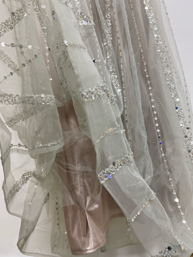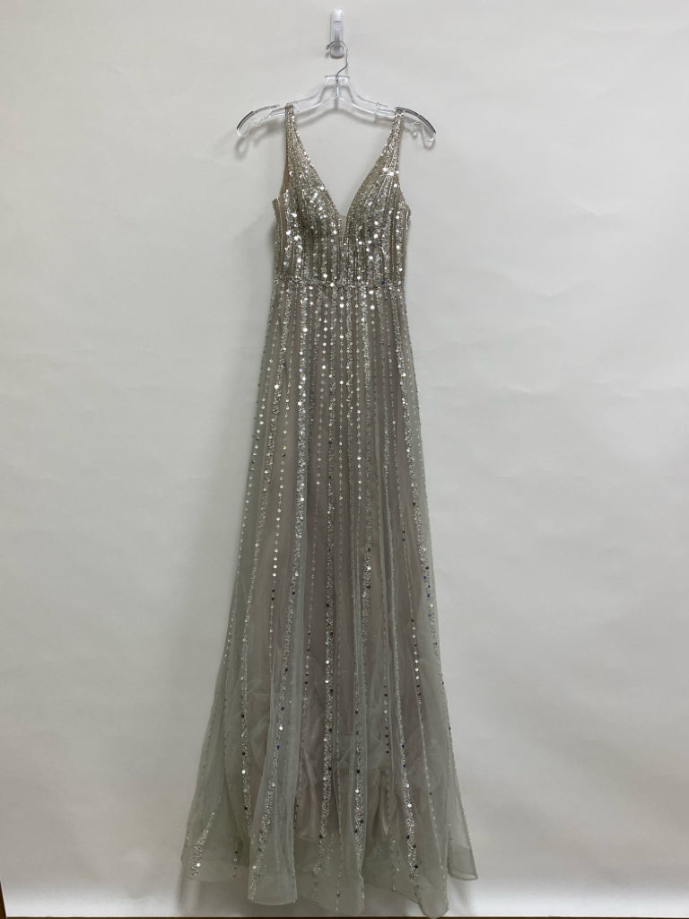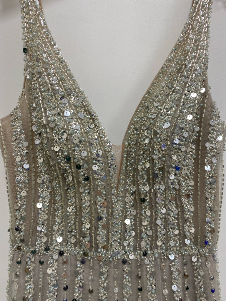 Size 3 Pale Gray Sequins Sleeveless Beaded Ladies Formal Dress *POSS ALTERED*