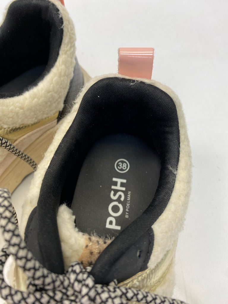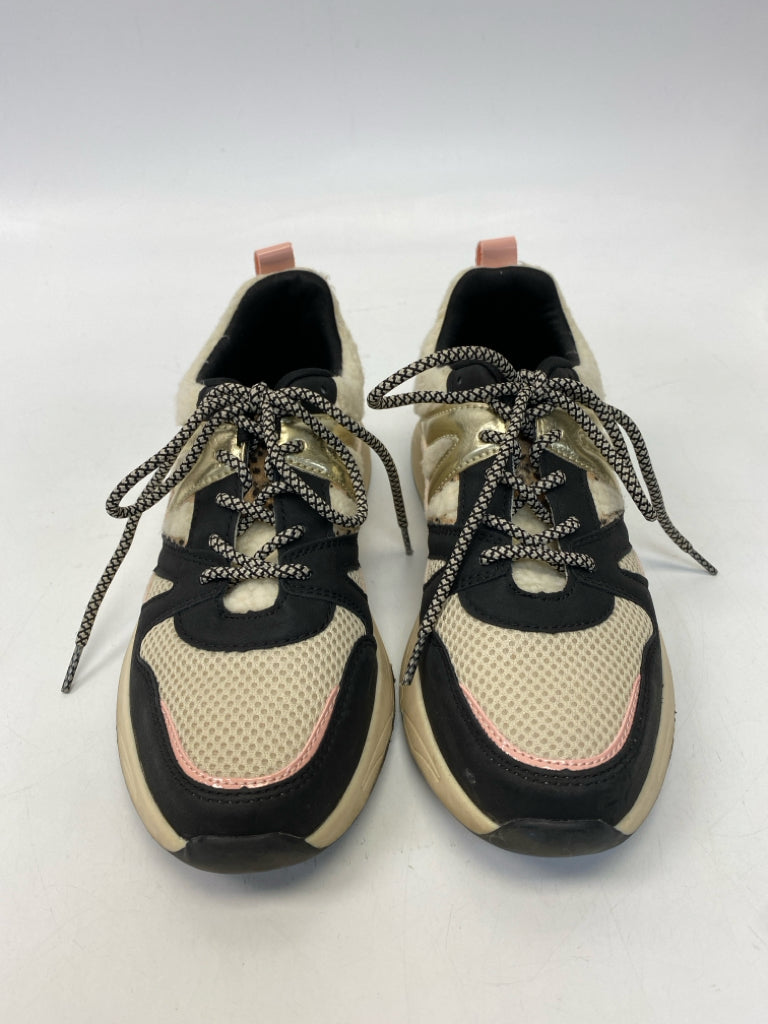 Size 38 Black/Cream Gold Lace-up Sneakers