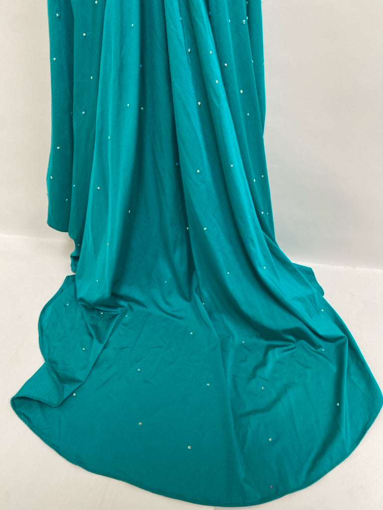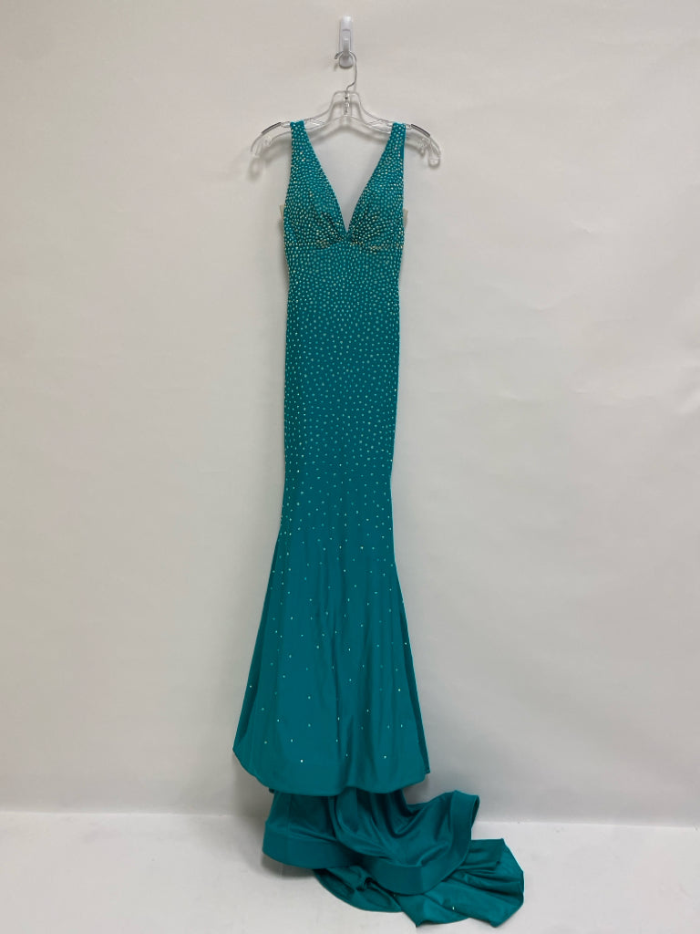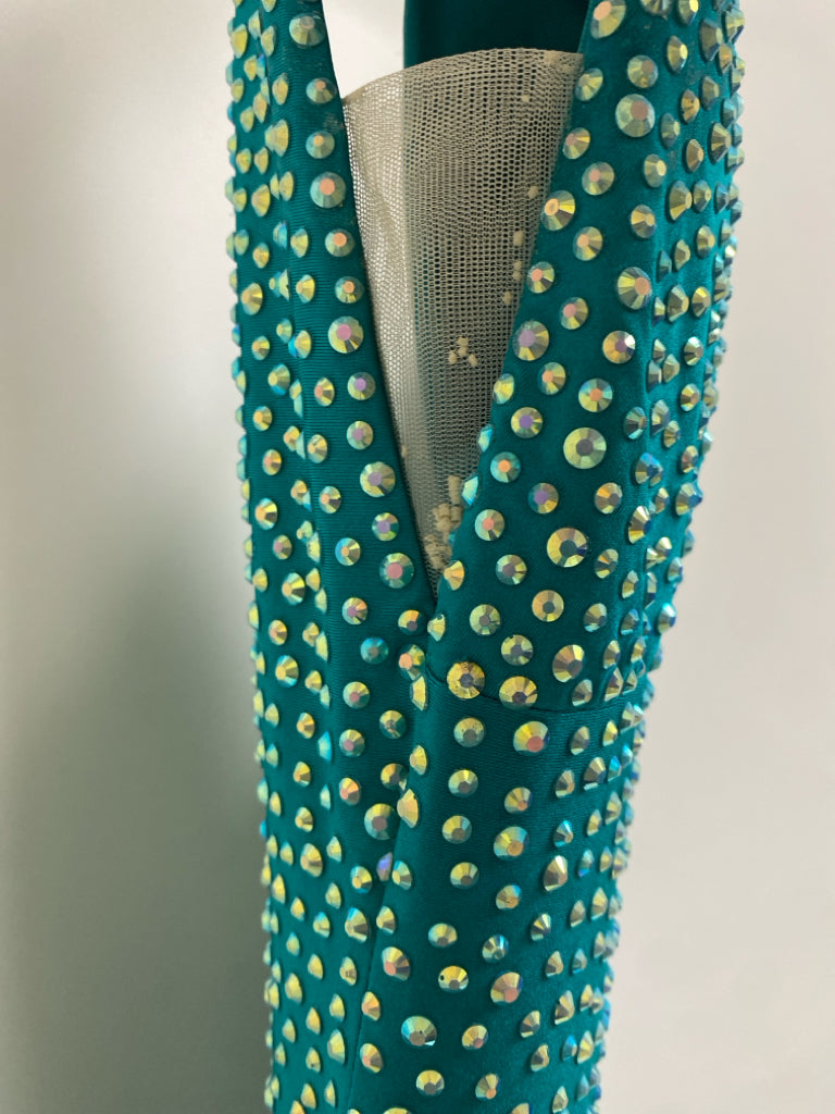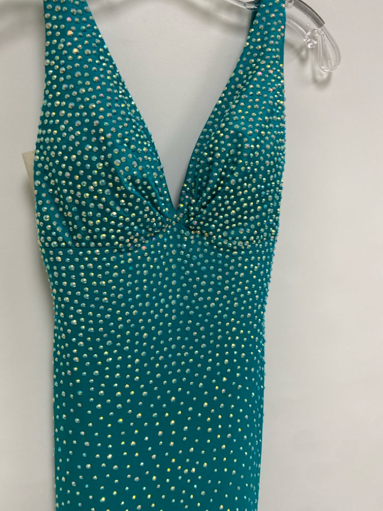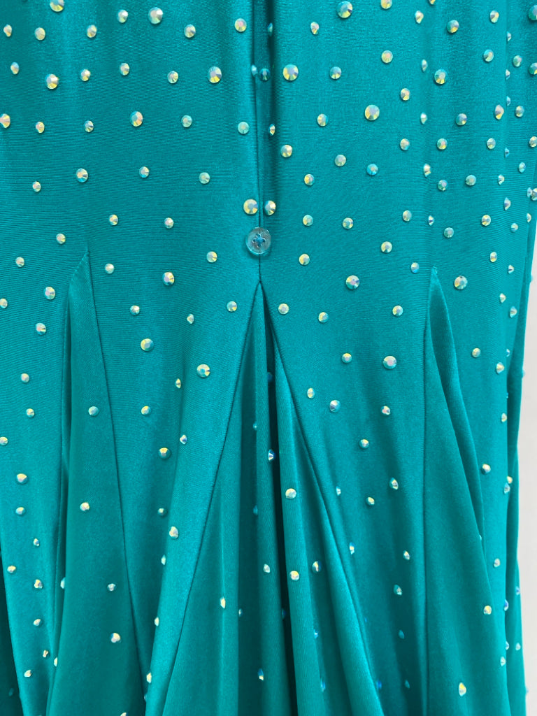 Size 6 Teal Green Jeweled V Neck Ladies Formal*Possibly Altered