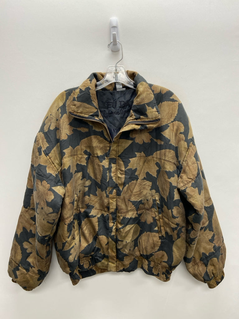 Size M Black Brown Leaves Silk Ladies Jacket