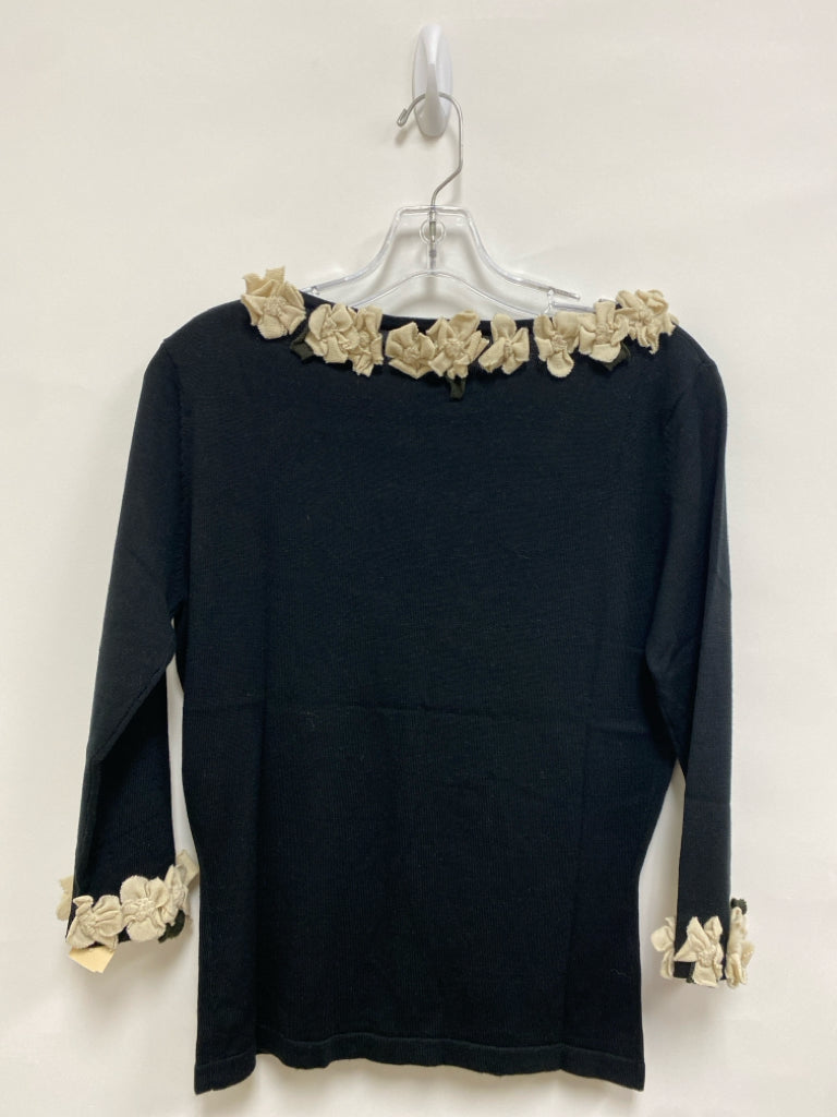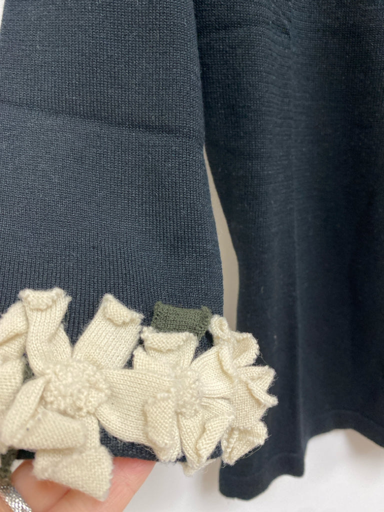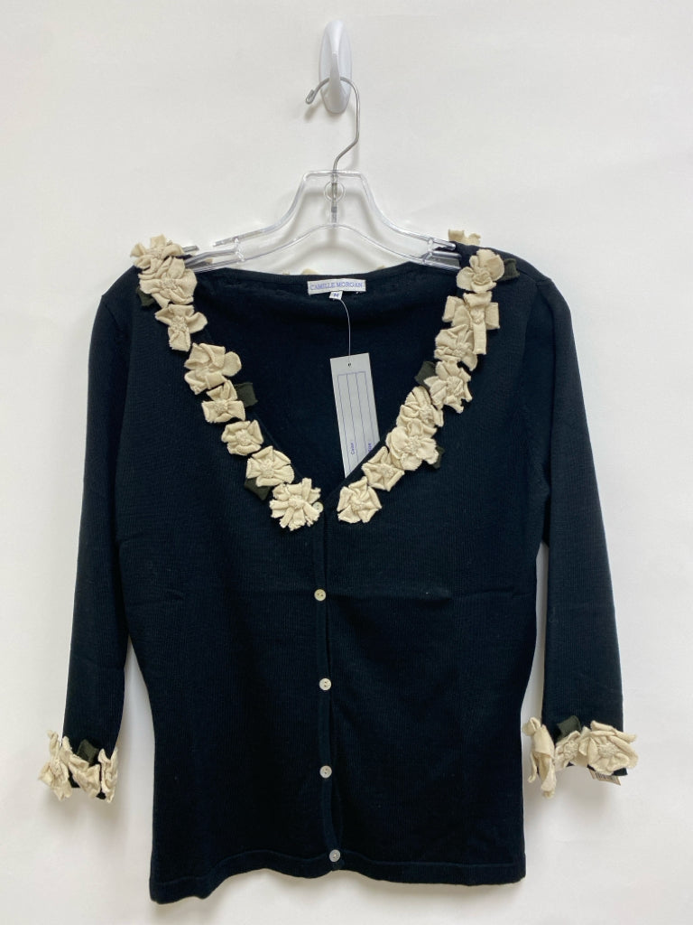 Size M Black Cream Applique Cardigan Silk Blend Ladies Sweater