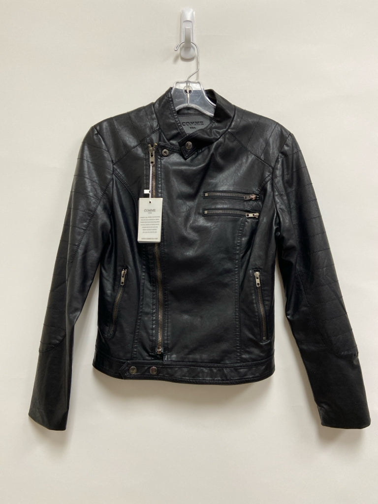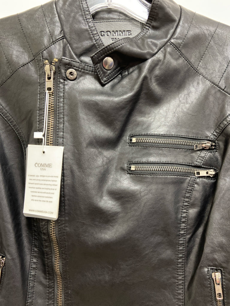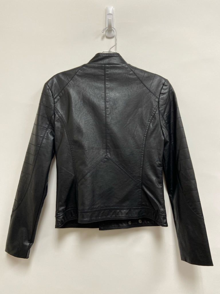 Size M Black Zip Down Faux Leather Ladies Jacket