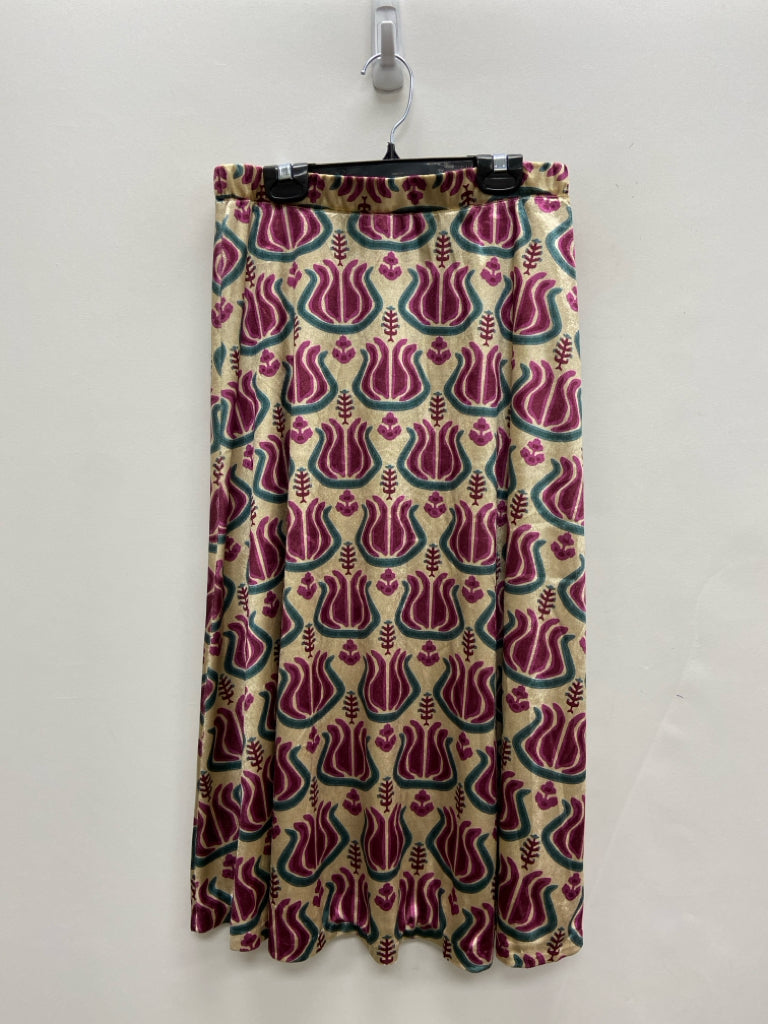 Size M Tan Burgundy/Green Floral Velour Ladies Skirt
