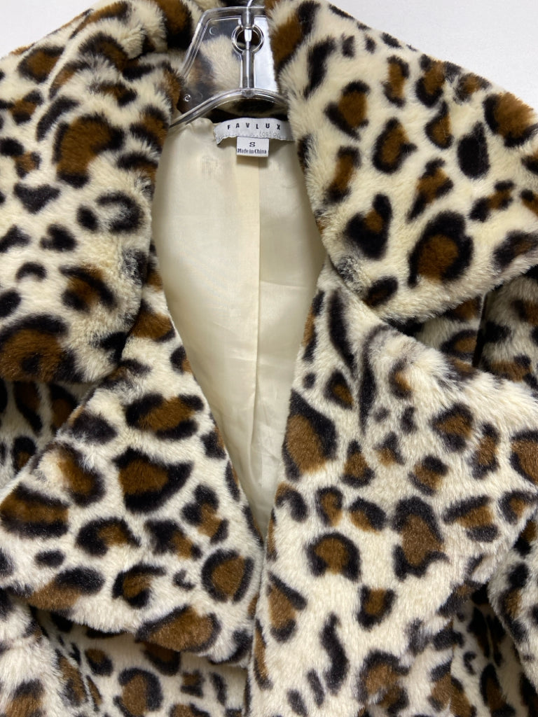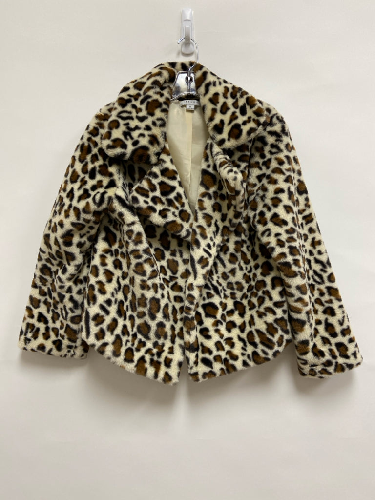 Size S Tan Brown/Black Animal Print Drape Ladies Coat