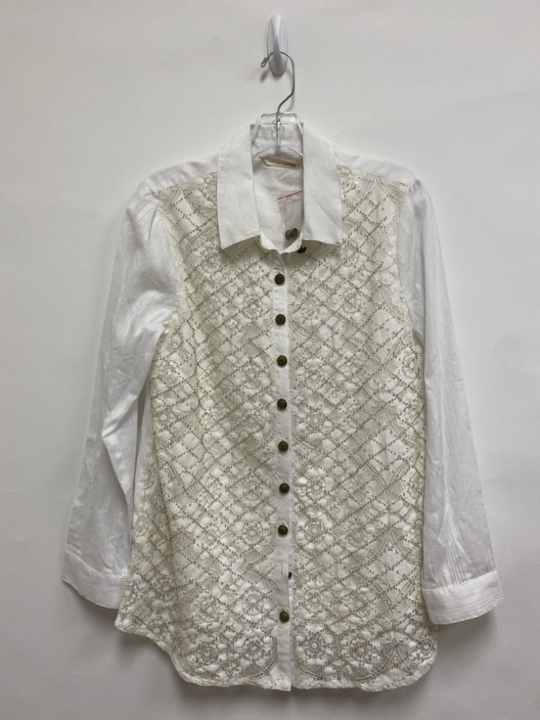 Soft Surroundings Size S White Beaded Button Up Ladies Top