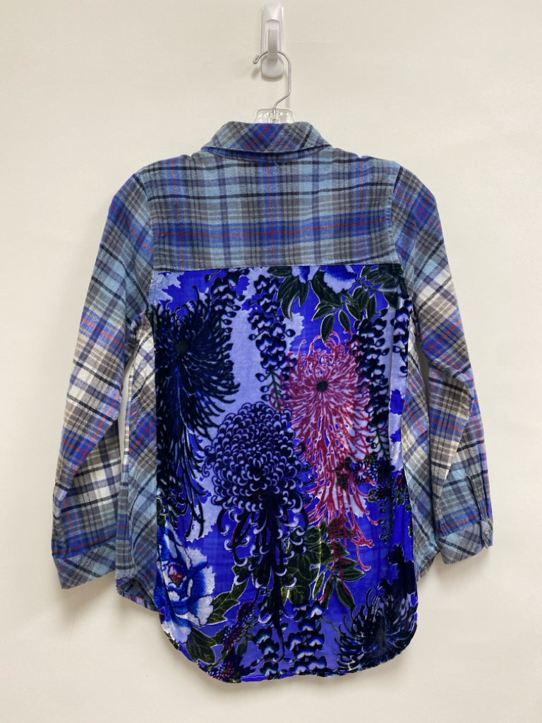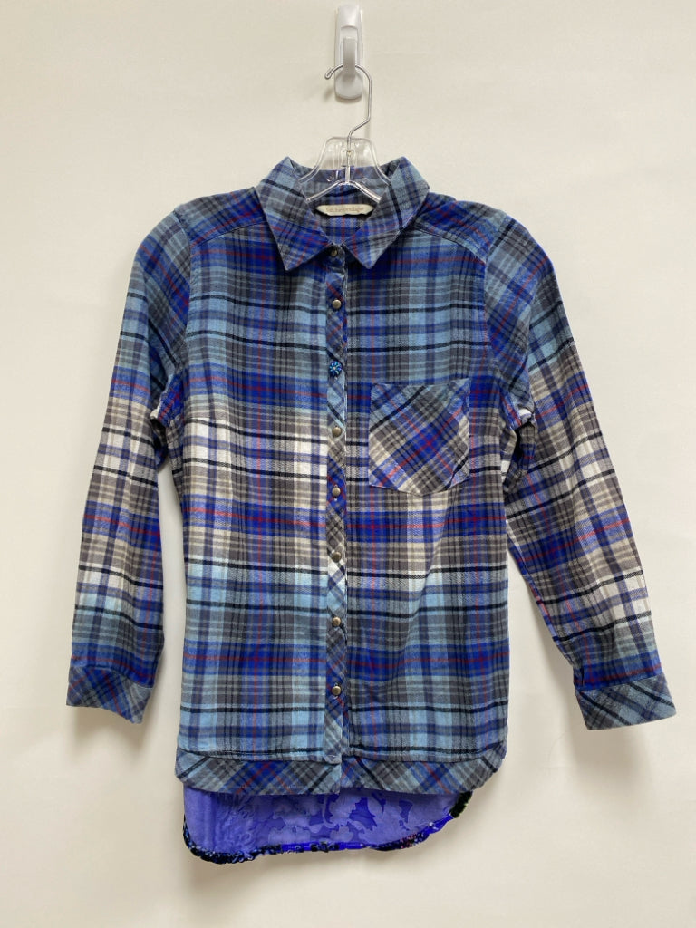 Soft Surroundings Size SP Blue/Gray Black Plaid Button Up Petite Top