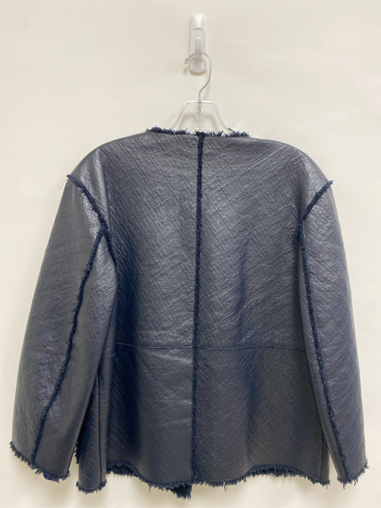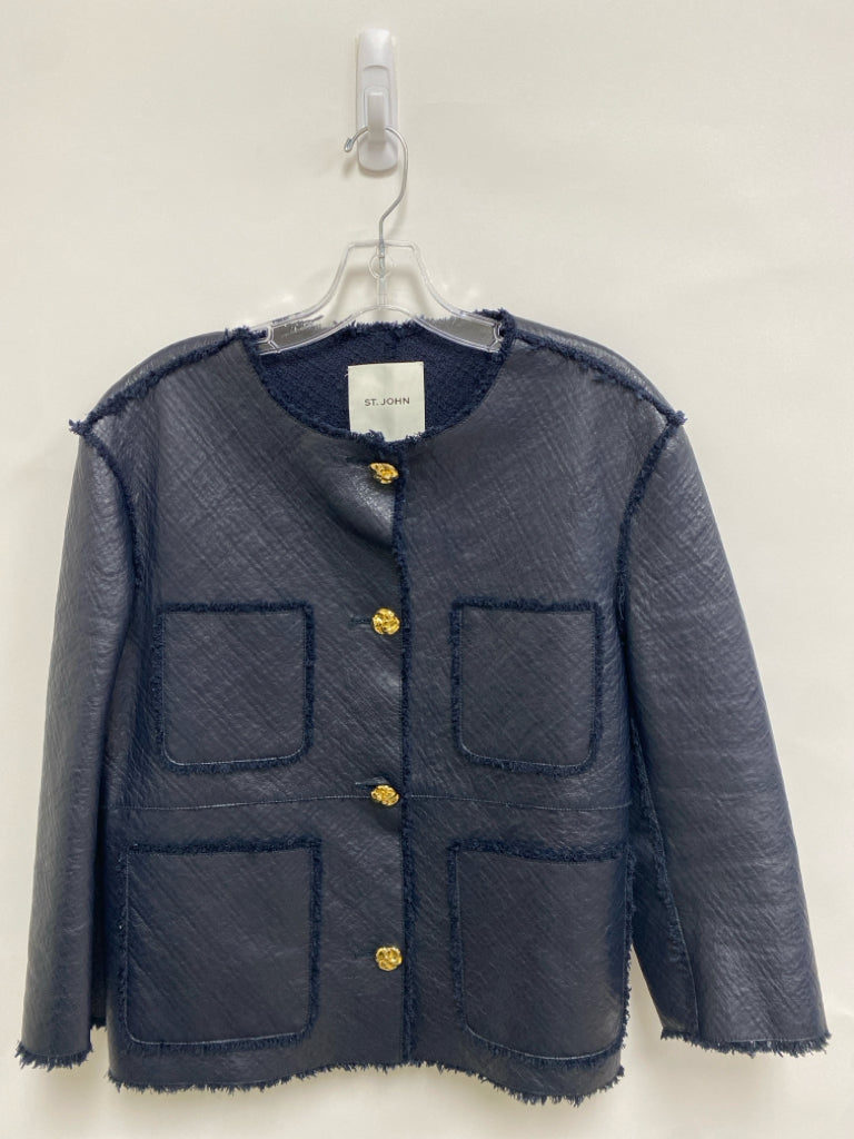 ST. JOHN Size 6 Navy Button Up Leather Ladies Jacket