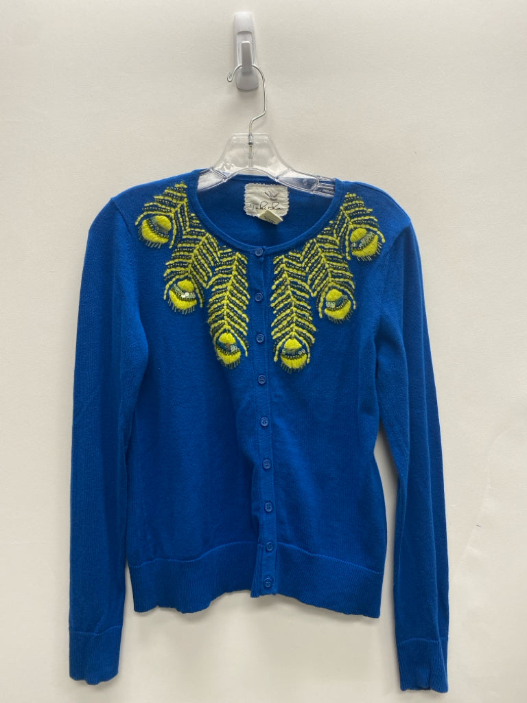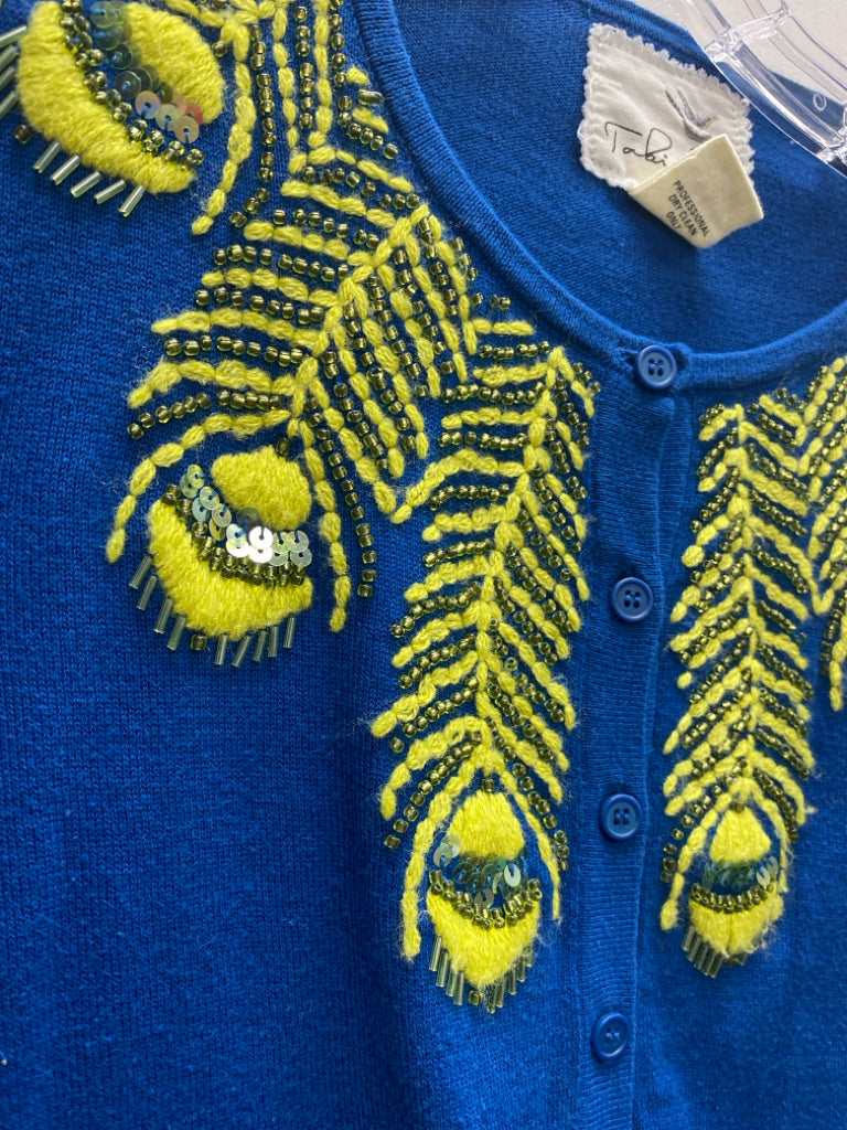 Tabitha Brand Size M Dark Blue Green Feathers Embroidered Ladies Sweater