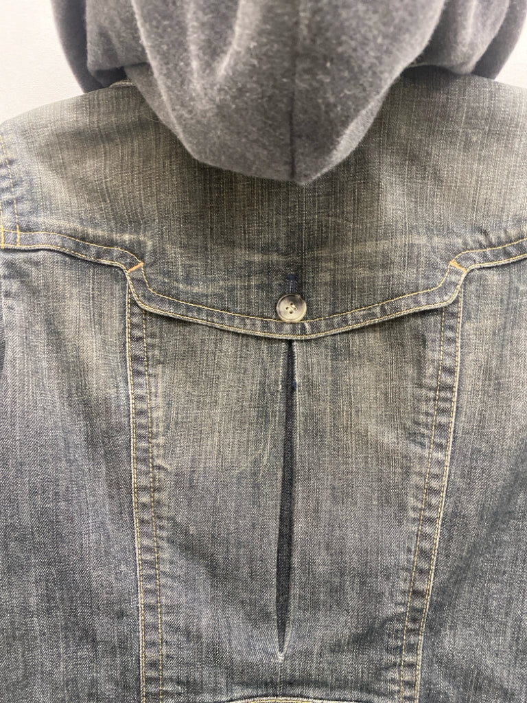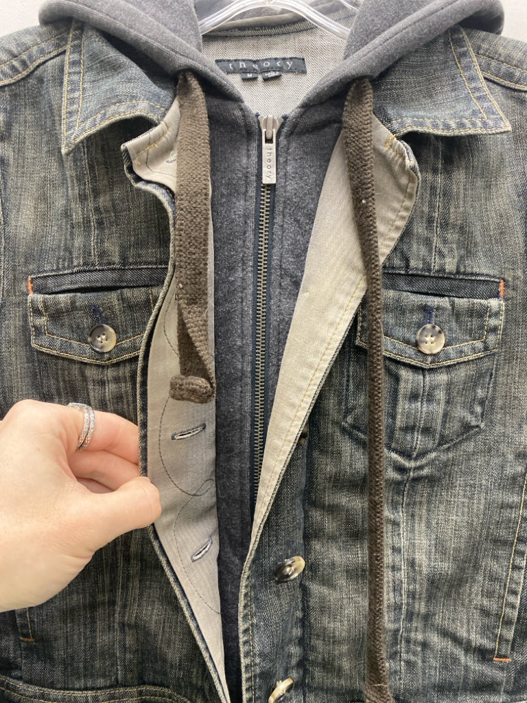 Theory Size M Gray Tan/Brown Hooded Denim Ladies Jacket