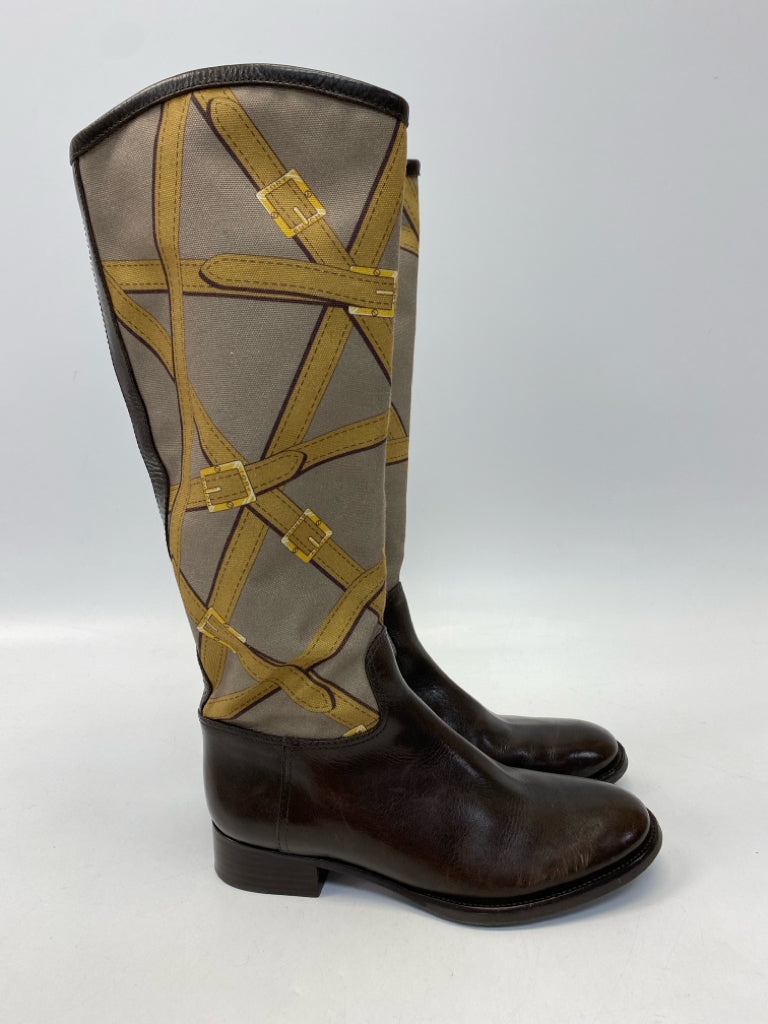 Tory Burch Size 9 Brown Gold/Tan Side Zipper Boots